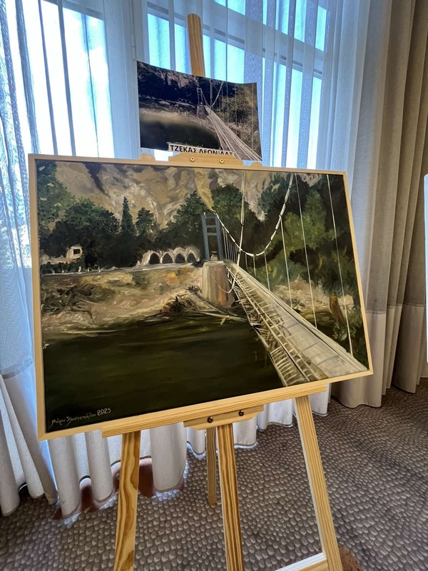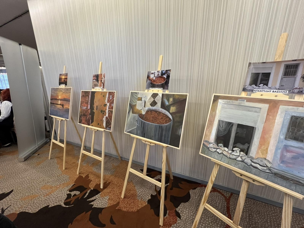 Τέλος, η εικαστικός κ. Μαρία Κωστοπούλου αναφέρθηκε στη δημιουργική διαδικασία και στα έργα που φιλοτέχνησε, εξηγώντας πώς οι φωτογραφίες των φωτορεπόρτερ αποτέλεσαν την αφετηρία για τη ζωγραφική αποτύπωση του ανθρώπινου πόνου, της δοκιμασίας αλλά και της ελπίδας που αναδύθηκε μέσα από την τραγωδία.