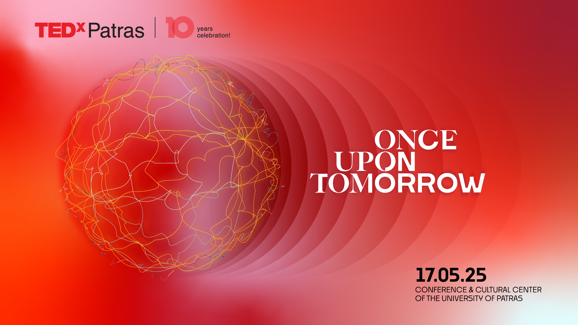 Δέκα χρόνια γεμάτα καινοτόμες ιδέες, δυνατές αφηγήσεις και αξέχαστες εμπειρίες. Το TEDxPatras επιστρέφει για τη 10η επετειακή του έκδοση, το Σάββατο 17 Μαΐου 2025, στο Συνεδριακό & Πολιτιστικό Κέντρο του Πανεπιστημίου Πατρών, με κεντρικό θέμα “Once Upon Tomorrow” («Μια Φορά στο Αύριο»).