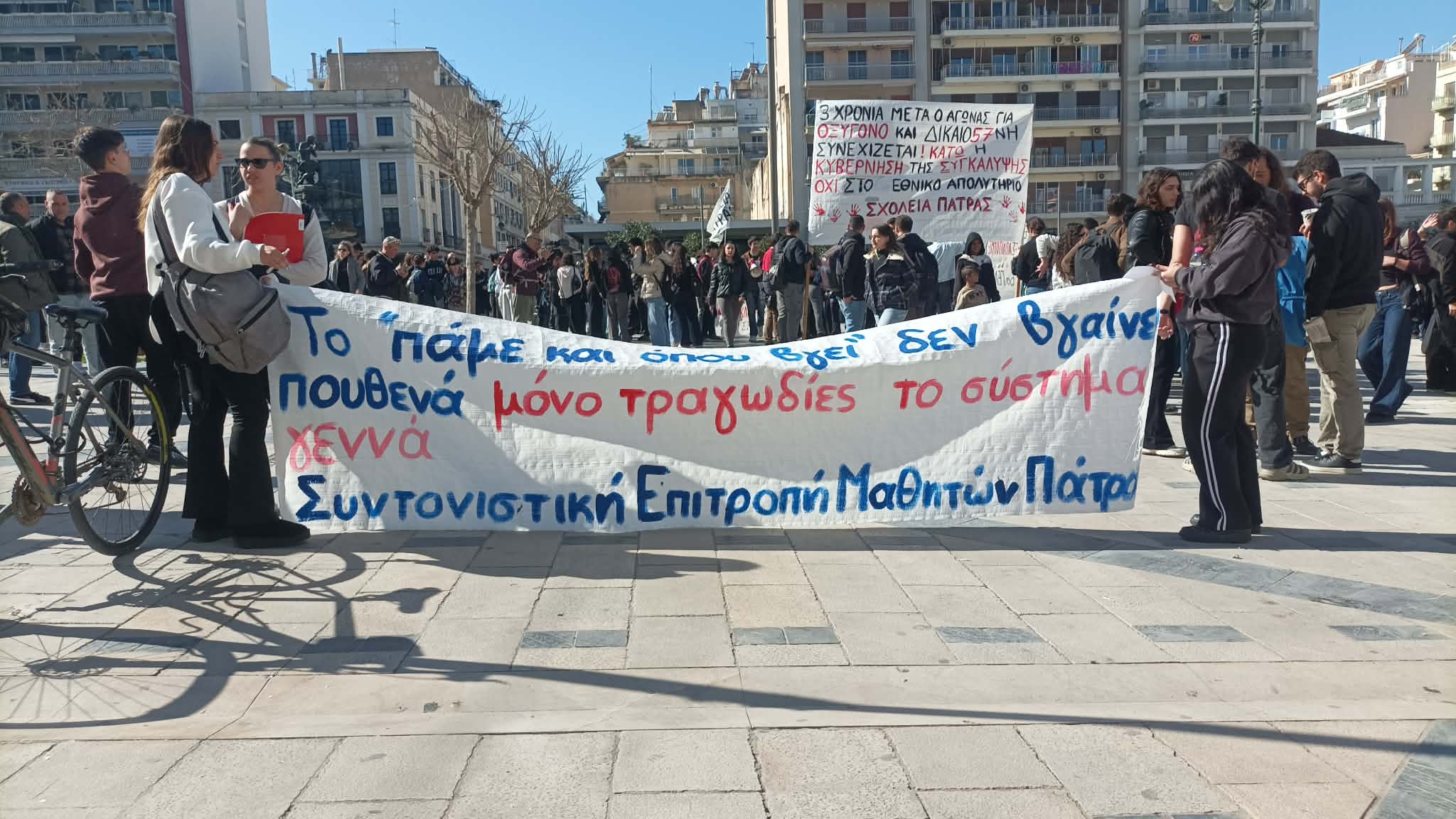 Μαθητικό συλλαλητήριο διοργανώνουν σήμερα (26/02) μαθητικοί και φοιτητικοί σύλλογοι της Πάτρας για την τραγωδία των Τεμπών.
