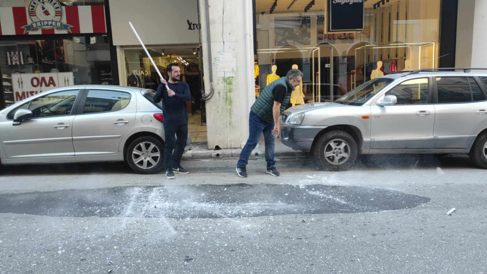 Σπάζοντας λάμπες, πιάτα και ανάβοντας βεγγαλικά, οι έμποροι της Πάτρας, υποδέχθηκαν την πρώτη Ανάσταση του Κυρίου.
