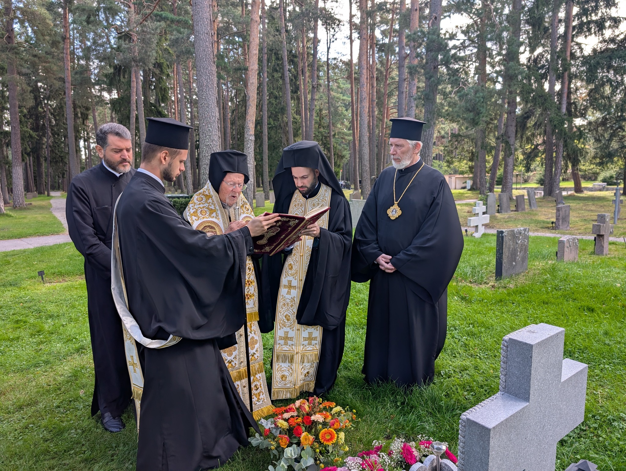 Προηγουμένως, συνοδευόμενος από τα μέλη της Πατριαρχικής Συνοδείας, μετέβη στο κοιμητήριο της πόλεως Skogskyrkogården, όπου, στον τάφο του μακαριστού Μητροπολίτου πρώην Αμασείας κυρού Παύλου, τέλεσε τρισάγιο υπέρ αναπαύσεως της ψυχής αυτού.