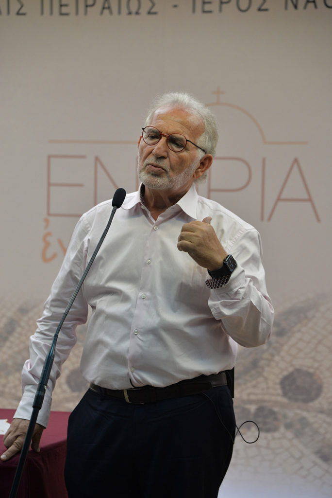 Η πρώτη ομιλία δόθηκε αμέσως μετά τον αγιασμό ενάρξεως και ομιλητής ήταν ο Δρ Δημήτριος Καραγιάννης, Eπίκουρος Καθηγητής του Πανεπιστημίου Frederick, Ψυχίατρος, Ψυχοθεραπευτής, που ανέπτυξε το θέμα: «Η ψυχική ομορφιά του ανθρώπου σ’ έναν κόσμο Τεχνητής Νοημοσύνης».
