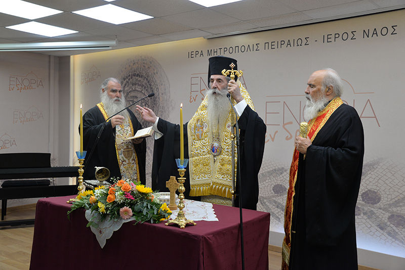 Μετά το πέρας του Αγιασμού, ο Σεβασμιώτατος Μητροπολίτης Πειραιώς κ. Σεραφείμ, αναφερόμενος στην έναρξη του προγράμματος «ΕΝΟΡΙΑ εν δράσει…», εξέφρασε τη χαρά του «για αυτήν την κοινότητα ζωής» τονίζοντας ότι αυτό το σπουδαίο έργο της ενορίας «πραγματικά καταδεικνύει το μέγεθος της Εκκλησίας, το είναι της Εκκλησίας, που είναι κοινωνία προσώπων».