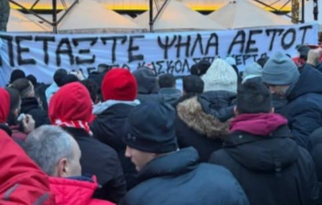 «Πετάξτε ψηλά αετοί» – Το πανό των οπαδών του Ολυμπιακού στο Άμστερνταμ για τους αδικοχαμένους φίλους του ΠΑΟΚ