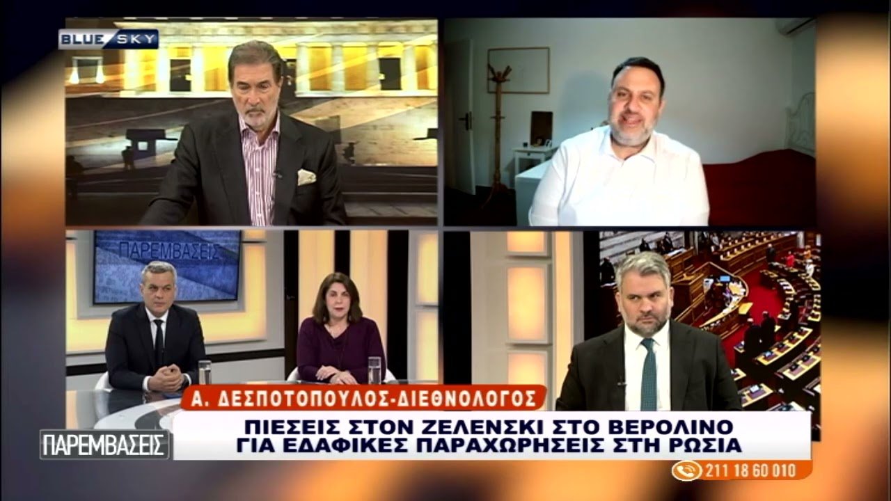 Αρχική News MEDIA Πιέσεις στον Ζελένσκι για εδαφικές παραχωρήσεις στην Ρωσία: Στο BLUE SKY ο… Στο BLUE SKY και στις ΠΑΡΕΜΒΑΣΕΙΣ (15 12 25) με τον Αντώνη Λιάρο ο Διεθνολόγος Αλέξανδρος Δεσποτόπουλος.