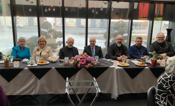 Στη συνέχεια ταξίδεψαν στη Sarnia, όπου το Σάββατο, 7 Μαρτίου 2026 ετελέσθη Θεία Λειτουργία στον Ιερό Ναό Αγίου Δημητρίου, προεξάρχοντος του Αρχιεπισκόπου κ. Σωτηρίου με τη συμμετοχή των ιερέων Ηλία Δρόσσου, Ευάγγελου Αραβαντινού και Χρυσοστόμου Αχιλλέως. Στο τέλος της Θείας Λειτουργίας ο Σεβασμιώτατος ενεχείρισε Πρωτοπρεσβύτερο τον π. Χρυσόστομο Αχιλλέως, ιερατ. προϊστάμενο και έκειρε Αναγνώστες τους David Shoesmith, Connor Bede Hussey και Nicholas Zuniga. Ακολούθησε καθ’όλη τη διάρκεια της ημέρας η Σύναξη των Φιλοπτώχων Αδελφοτήτων.