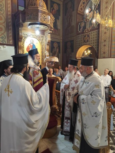 Παραμονή της εορτής της Κοιμήσεως και Μεταστάσεως της Υπεραγίας Θεοτόκου, ο Σεβασμιώτατος Μητροπολίτης Θεσσαλιώτιδος και Φαναριοφερσάλων κ. Τιμόθεος χοροστάτησε στην ακολουθία του Εσπερινού, που τελέσθηκε στον Ιερό Ναό Κοιμήσεως της Θεοτόκου Μουζακίου, παρουσία πλήθους πιστών.