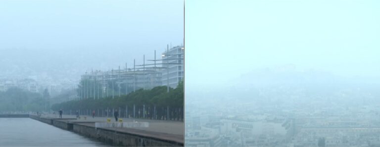 Ακόμη μία ημέρα που οι περισσότερες περιοχές της χώρας, κυρίως στα νότια, δείχνουν απόκοσμες από την αφρικανική σκόνη. Το ξημέρωμα της Τετάρτης 24 Απριλίου, βρίσκει την Αθήνα μέσα σε ένα έντονο και αποπνικτικό κλοιό σκόνης, που ακόμα και η Ακρόπολη δεν φαίνεται, ενώ και στη Θεσσαλονίκη η σκόνη έχει κάνει την εμφάνισή της.