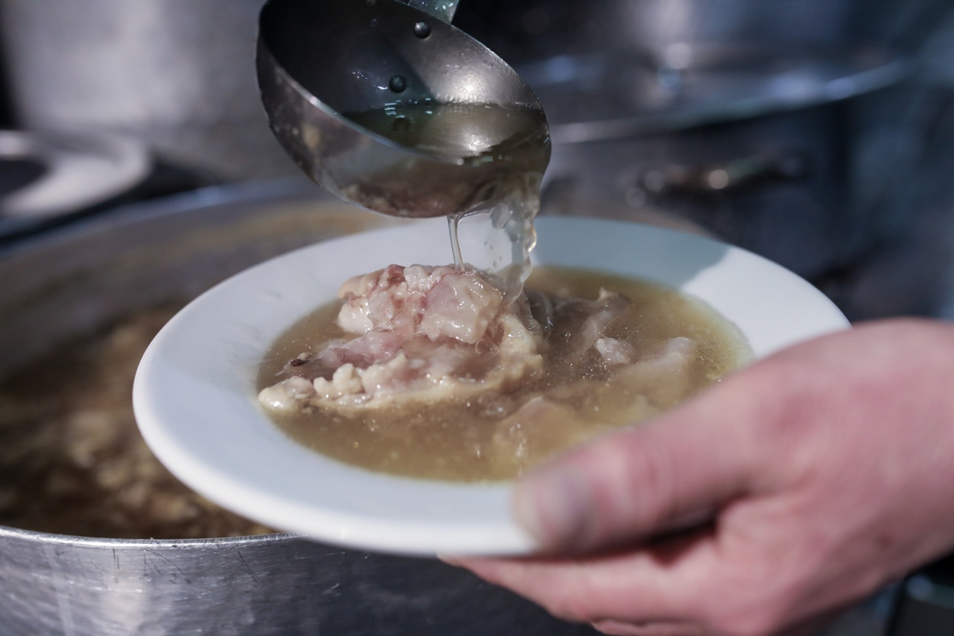 Στην κουζίνα του εστιατορίου, η παρασκευή της σούπας έχει σχεδόν τελετουργικό χαρακτήρα. Ο σεφ Πανταζής Κουκουμβρής εργάζεται μπροστά από καζάνια που βράζουν, όπου τα πόδια και οι κοιλιές μαγειρεύονται στον ζωμό. «Εδώ ξεκινά η τέχνη από το πρωί», αναφέρει, βασιζόμενος στην 22ετή εμπειρία του στην παρασκευή πατσά. Όπως εξηγεί, «βάζουμε τις κοιλιές και τα πόδια να βράσουν, ώστε να φτιάξουμε τον ζωμό σε μικρότερο καζάνι», προσθέτοντας ότι η συνταγή πέρασε από τους αρχαίους Έλληνες στους Βυζαντινούς και στη συνέχεια στους Οθωμανούς.