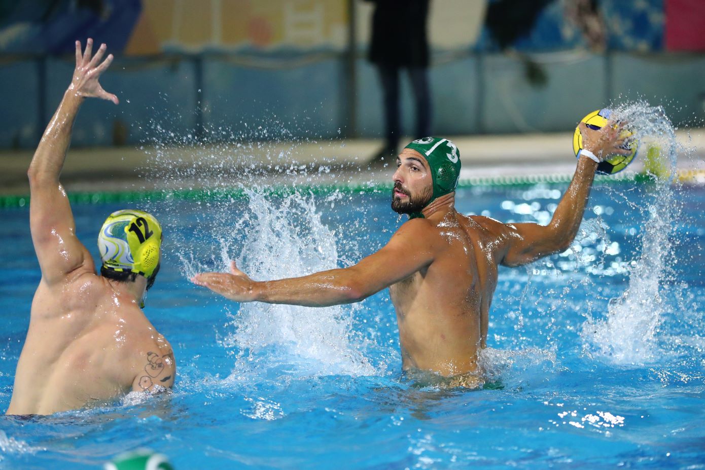 Η ομάδα πόλο ανδρών των «πράσινων» στο πρώτο ματς πραγματοποίησε πολύ καλή εμφάνιση και διεκδίκησε τη νίκη μέχρι το τέλος, αλλά τελικά ηττήθηκε από του Κροάτες με 10-11.