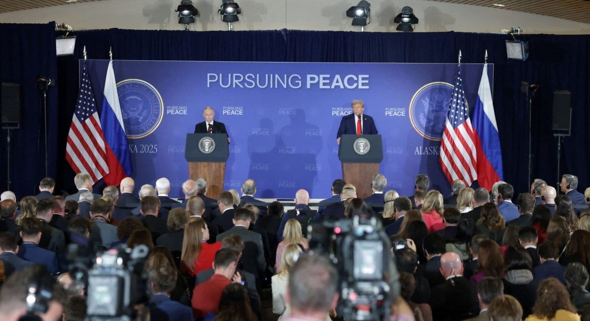 Ύστερα από σχεδόν τρεις ώρες συνομιλιών στην αεροπορική βάση Έλμεντορφ-Ρίτσαρντσον κοντά στο Άνκορατζ της Αλάσκας, οι δύο ηγέτες παραχώρησαν κοινή συνέντευξη Τύπου.
