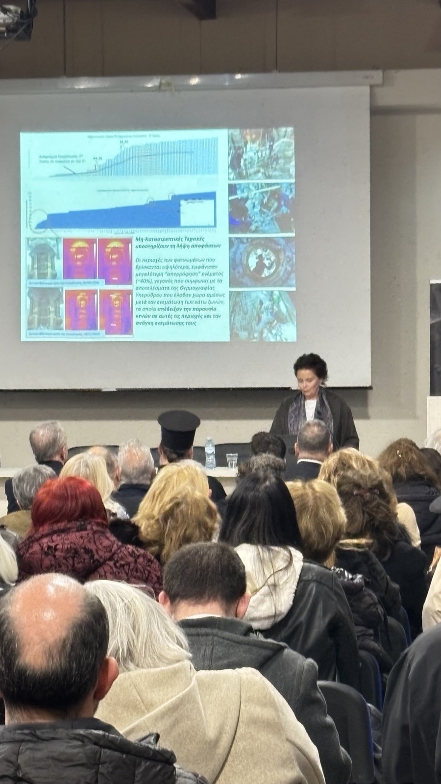 Στην εμπεριστατωμένη και ιδιαίτερα συγκινητική ομιλία της, η κ. Μοροπούλου αναφέρθηκε στην ιστορική, αρχαιολογική και πνευματική σημασία του Πανίερου Ναού της Αναστάσεως στα Ιεροσόλυμα, παρουσιάζοντας, μέσα από εικόνες και τρισδιάστατα γραφήματα το έργο της συντήρησης, αποκαταστάσεως και αναδείξεως του Ιερού Κουβουκλίου του Παναγίου Τάφου, το οποίο αποτελεί σημείο αναφοράς για ολόκληρη την χριστιανοσύνη.