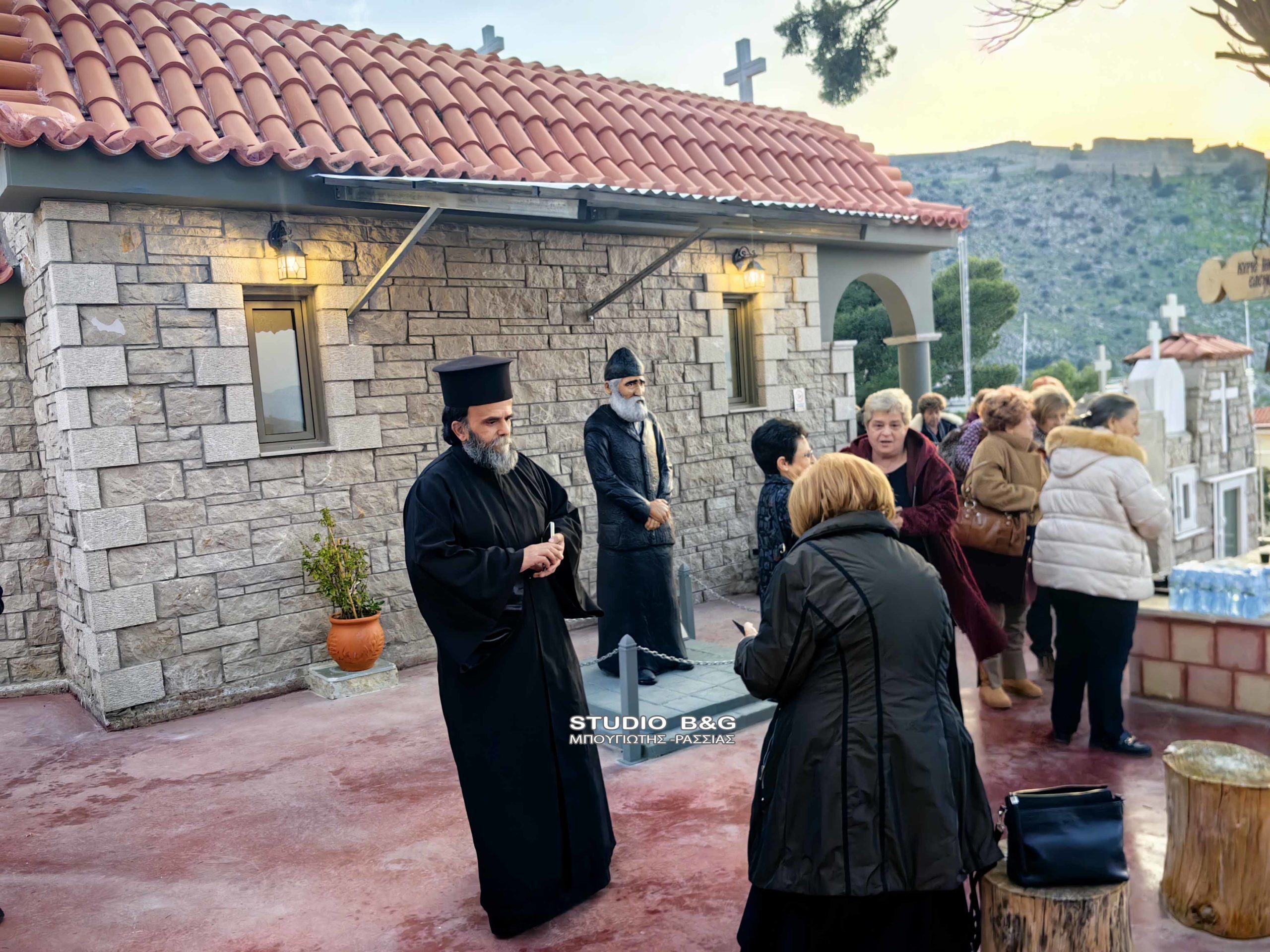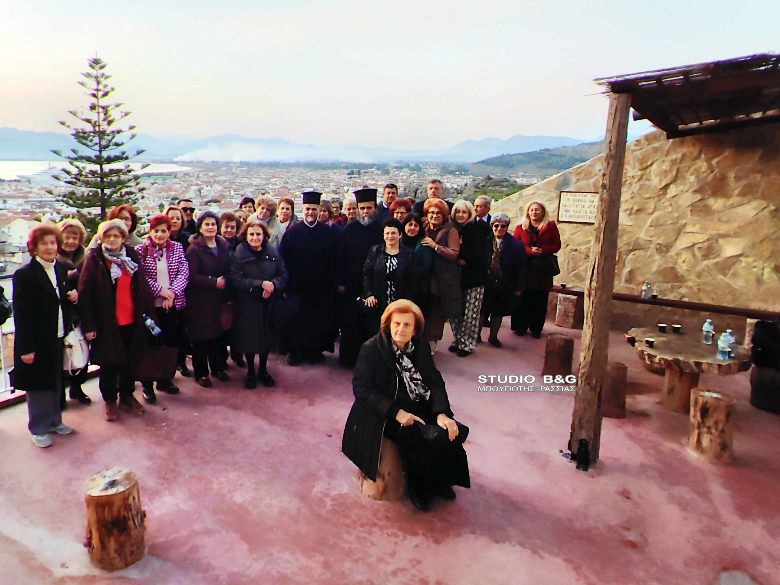 Η εκδρομή τελείωσε με την επίσκεψη στην ενορία της Ευαγγελίστριας Ναυπλίου όπου υπάρχει το ομοίωμα του Αγίου Παϊσίου του Αγιορείτη . Εκεί τους περίμενε ο δραστήριος ιερέας του ναού π. Ελευθέριος Μίχος , όπου τους ξενάγησε στο εκκλησιαστικό μουσείο και στους άλλους χώρους του συγκροτήματος . Τέλος οι εκδρομείς συναντήθηκαν και παρακολούθησαν την ομιλία από τον Μητροπολίτη Αργολίδας Νεκτάριο με θέμα «Η γυναίκα στην Χριστιανική Ορθόδοξη Εκκλησία».