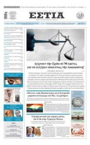 ΠΡΩΤΟΣΕΛΙΔΑ ΕΦΗΜΕΡΙΔΩΝ 4 Μαϊου 2024 Share ΠΟΛΙΤΙΚΕΣ ΑΘΛΗΤΙΚΕΣ ΟΙΚΟΝΟΜΙΚΕΣ Βόρειας Ελλάδας Θεσσαλίας Κρήτης Υπόλοιπης Ελλάδας Share FacebookTwitterGoogle+ReddItWhatsAppPinterestΗΛΕΚΤΡΟΝΙΚΗ ΔΙΕΥΘΥΝΣΗ