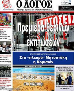 ΠΡΩΤΟΣΕΛΙΔΑ ΕΦΗΜΕΡΙΔΩΝ – ΚΥΡΙΑΚΗ 7 ΙΟΥΛΙΟΥ 2024