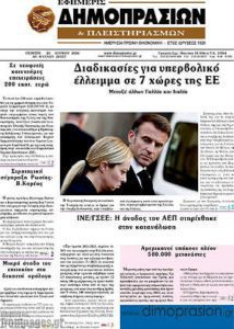 ΠΡΩΤΟΣΕΛΙΔΑ ΕΦΗΜΕΡΙΔΩΝ – ΠΕΜΠΤΗ 20 ΙΟΥΝΙΟΥ 2024