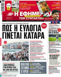 ΠΡΩΤΟΣΕΛΙΔΑ ΕΦΗΜΕΡΙΔΩΝ – ΣΑΒΒΑΤΟ 13 ΙΟΥΛΙΟΥ 2024