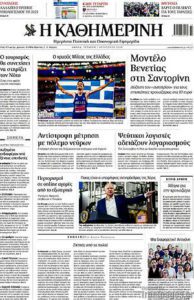 ΠΡΩΤΟΣΕΛΙΔΑ ΕΦΗΜΕΡΙΔΩΝ – ΤΕΤΑΡΤΗ 7 ΑΥΓΟΥΣΤΟΥ 2024