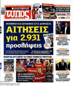 Πρωτοσέλιδα Εφημερίδων – Διαβάστε τα πρωτοσέλιδα και τα οπισθόφυλλα των εφημερίδων. Πλήρης ενημέρωση με μια γρήγορη ματιά