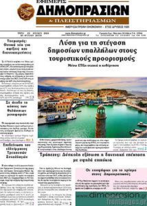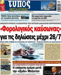 ΠΡΩΤΟΣΕΛΙΔΑ ΕΦΗΜΕΡΙΔΩΝ – ΤΡΙΤΗ 23 ΙΟΥΛΙΟΥ 2024