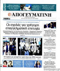 Πρωτοσέλιδα Εφημερίδων – Διαβάστε τα πρωτοσέλιδα των εφημερίδων. Πλήρης ενημέρωση με μια γρήγορη ματιά