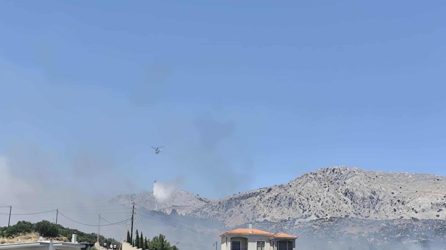 Η φωτιά καίει χορτολιβαδική έκταση, ενώ δεν κινδυνεύουν σπίτια λόγω της φοράς των ανέμων που είναι πολύ ισχυροί. Κατευθύνεται προς το λόφο του Αγίου Δημητρίου, όπου υπάρχουν και τμήματα πευκοδάσους. Παράλληλα έχει εκδηλωθεί και δεύτερο μέτωπο φωτιάς στην περιοχή Κορακάρη.