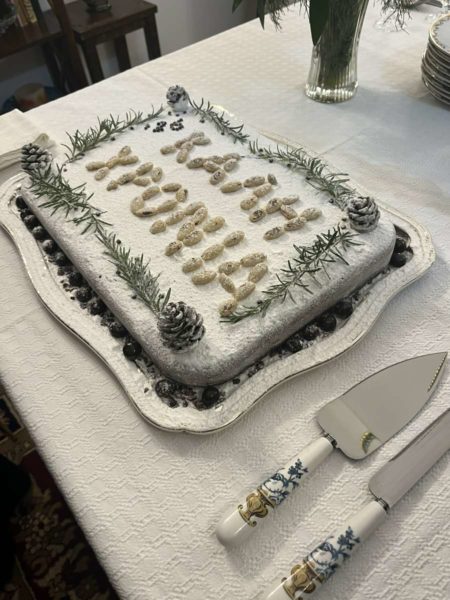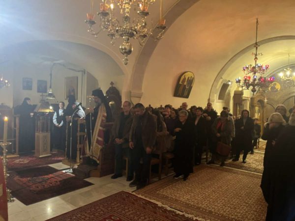 Ακολούθως, όλοι μετέβησαν στη μοναστηριακή τράπεζα, όπου ο Σεβασμιώτατος ευλόγησε και διένειμε την Αγιοβασιλόπιτα της Ιεράς Μονής, της οποίας το φλουρί έλαχε στον κ. Γεώργιο Χρηστίδη, Αγιογράφο και συνεργάτη της Μονής.