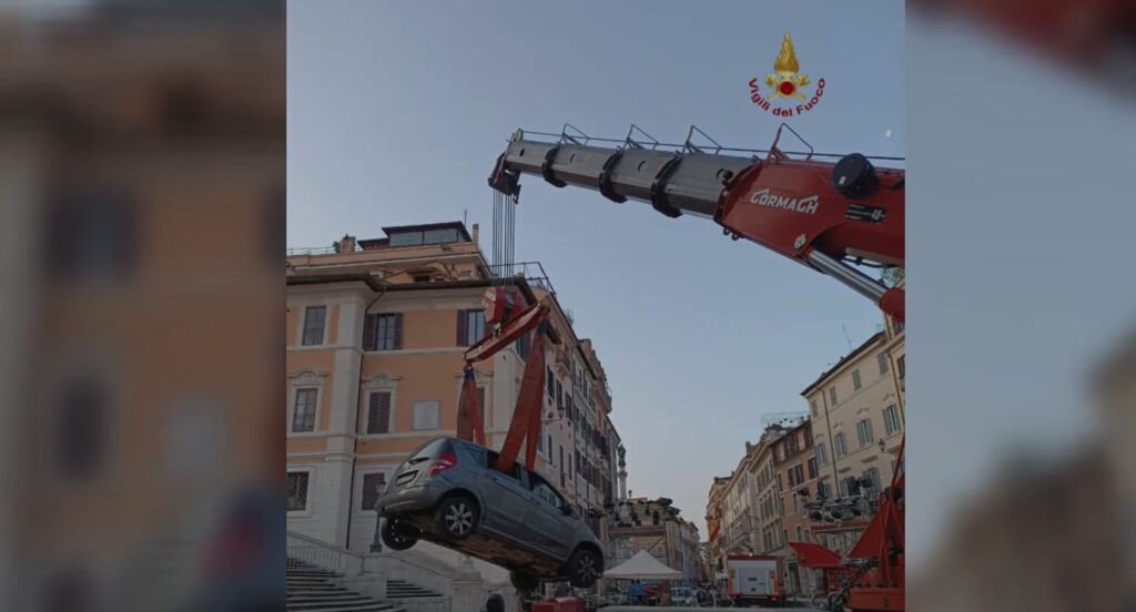 Τα ξημερώματα οι άνδρες του Πυροσβεστικού Σώματος της Ρώμης ανέσυραν ένα αυτοκίνητο από τα σκαλοπάτια της περίφημης Πιάτσα ντι Σπάνια, όπου ένας 81χρονος οδηγός είχε οδηγήσει από την Τρινιτά ντει Μόντι μέχρι εκεί.