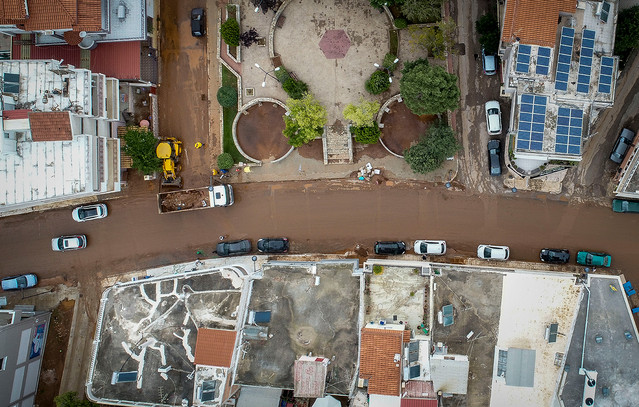 Η Μάνδρα πνίγεται μέσα σε μισή ώρα. Άνθρωποι παλεύουν να σωθούν πάνω σε αυτοκίνητα, γυναίκες και ηλικιωμένοι χτυπούν πόρτες για βοήθεια, ενώ τα συνεργεία διάσωσης δίνουν μάχη με το χρόνο και με απροσπέλαστους δρόμους. Οι εικόνες των κατεστραμμένων σπιτιών και των λασπωμένων δρόμων ταξιδεύουν σε όλο τον κόσμο.