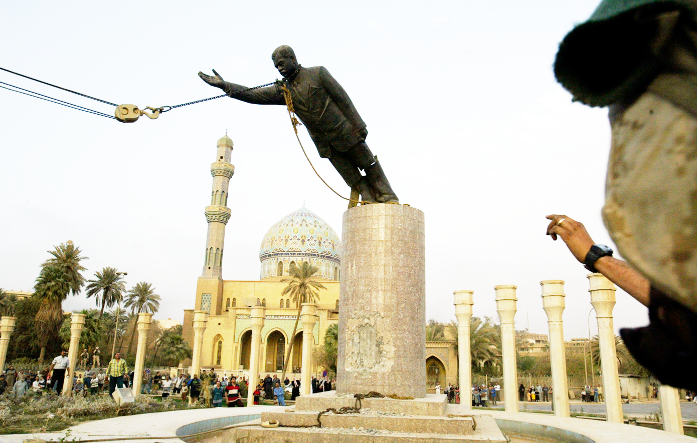 2003: Μόλις τρεις εβδομάδες μετά την έναρξη της εισβολής στο Ιράκ, δυνάμεις των ΗΠΑ ανατρέπουν το χάλκινο άγαλμα του Σαντάμ Χουσεΐν στην πλατεία Φιρντός στη Βαγδάτη. Η σκηνή μεταδίδεται σε όλο τον κόσμο και γίνεται ένα από τα πιο εμβληματικά στιγμιότυπα της πτώσης του καθεστώτος, συμβολίζοντας το τέλος της εξουσίας του Χουσεΐν, αν και αργότερα θα αποτελέσει αντικείμενο συζήτησης για τον βαθμό αυθορμητισμού ή σκηνοθεσίας της.