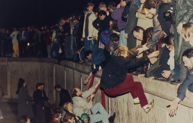 1989Πέφτει το Τείχος του Βερολίνου μετά από 28 χρόνια. Η Λαϊκή Δημοκρατία της Γερμανίας ανοίγει τα σύνορά της προς τη Δύση. Κάτοικοι της πόλης αρχίζουν την κατεδάφιση του Τείχους. Εκατοντάδες χιλιάδες Ανατολικογερμανοί ξεχύνονται στη Δυτική Γερμανία.