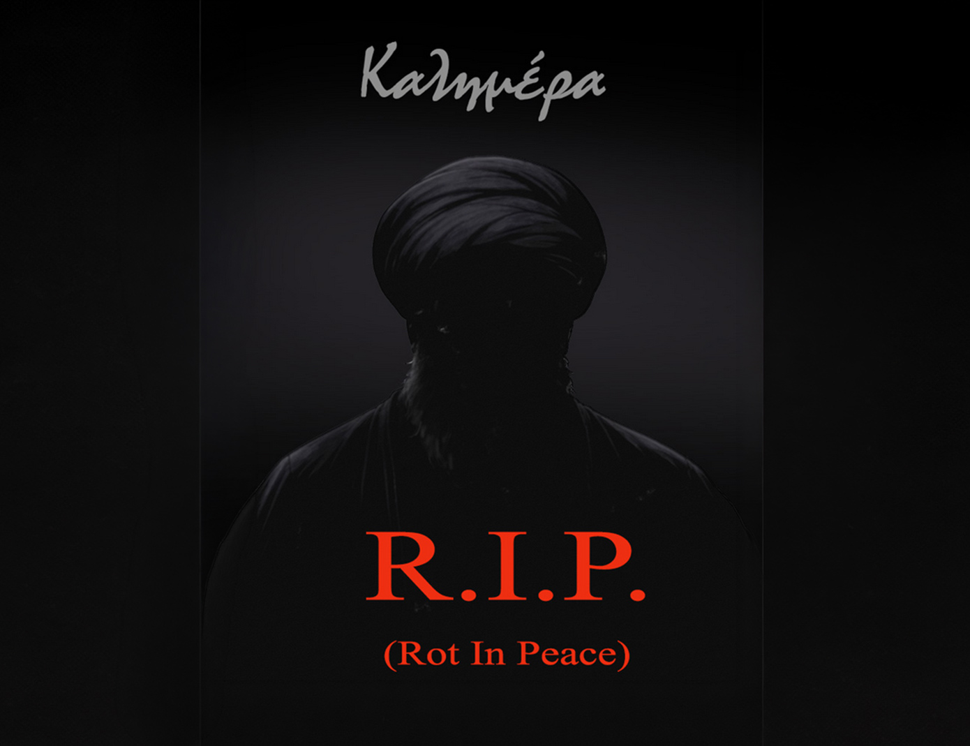 Στο σκίτσο που δημοσίευσε εμφανίζεται μια σκοτεινή φιγούρα και στο κέντρο γράφει με κόκκινα γράμματα «R.I.P.» και «Rot In Peace», δηλαδή «Σάπισε εν ειρήνη».