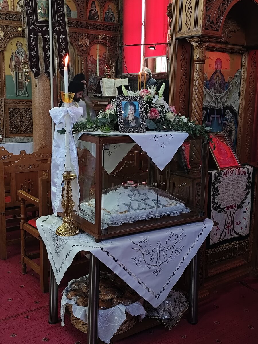 Τέλος, κάλεσε όλους να προσευχηθούν για την κεκοιμημένη αδελφή, παρακαλώντας την Κυρία Θεοτόκο να μεταφέρει τις προσευχές προς τον Κύριο της Δόξης, ώστε να αναπαύσει την ψυχή της «εν χώρα ζώντων και εν σκηναίς δικαίων».