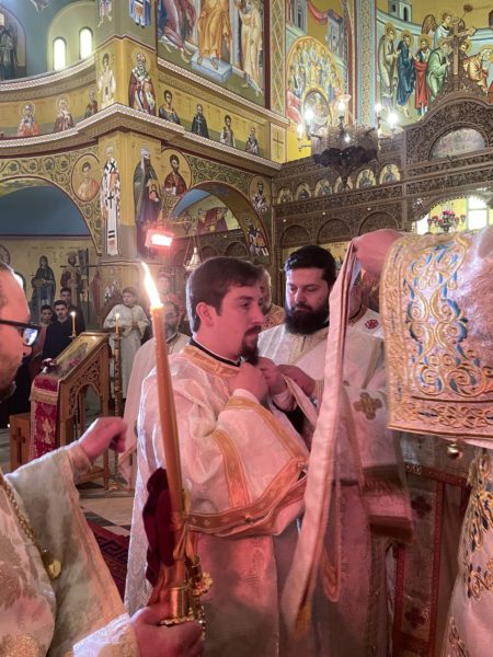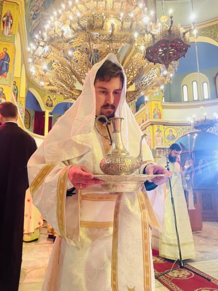 Η ατμόσφαιρα στον ναό ήταν πανηγυρική και κατανυκτική, διανθισμένη με τους ύμνους της ημέρας και προσευχές προς τον Θεό για τη νέα διακονία του διακόνου.