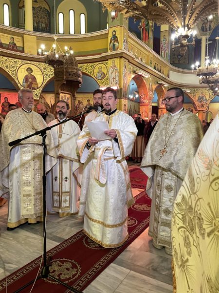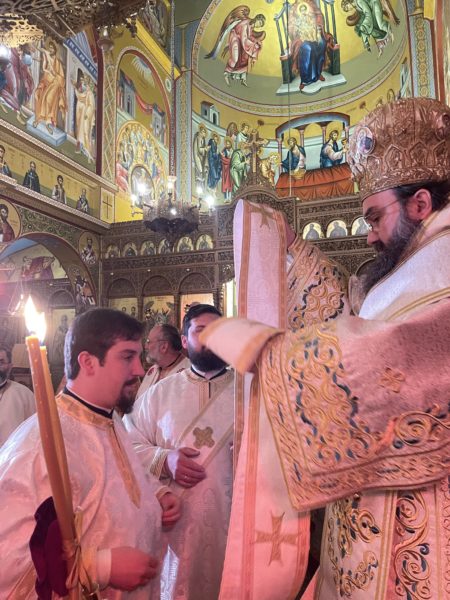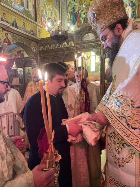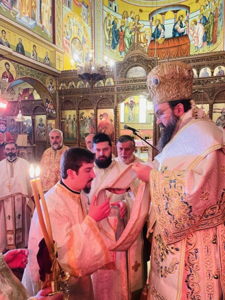 Κατά τη διάρκεια της Θείας Λειτουργίας ο Σεβασμιώτατος τέλεσε την εις Διάκονον χειροτονία του κ. Κωνσταντίνου Μέκο. Απευθυνόμενος προς τον νεοχειροτονηθέντα Διάκονο ο Σεβασμιώτατος τον κάλεσε να καταστεί πιστός και αφοσιωμένος υπηρέτης του Θεού.
