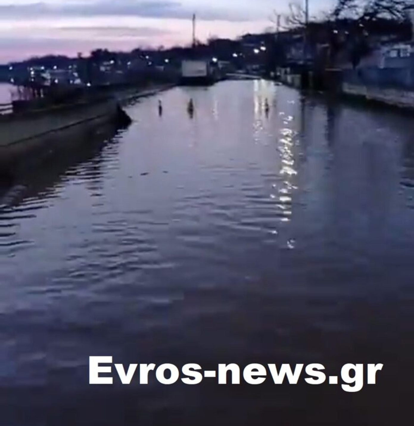 Ιδιαίτερα δύσκολη ήταν η νύχτα για τους κατοίκους στις παράκτιες περιοχές του ποταμού Έβρου, καθώς η στάθμη του νερού έχει ξεπεράσει κατά πολύ το όριο συναγερμού των 6,40 μέτρων, φτάνοντας ακόμη και τα 7 μέτρα.