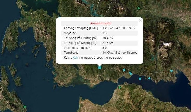 Σεισμική δόνηση 3,3 βαθμών της κλίμακας Ρίχτερ σημειώθηκε στην Αιτωλοακαρνανία.