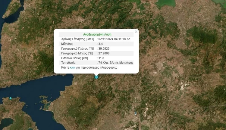 Σεισμός μεγέθους 3,4 Ρίχτερ σημειώθηκε τα ξημερώματα του Σαββάτου (2/11) στην Μυτιλήνη.