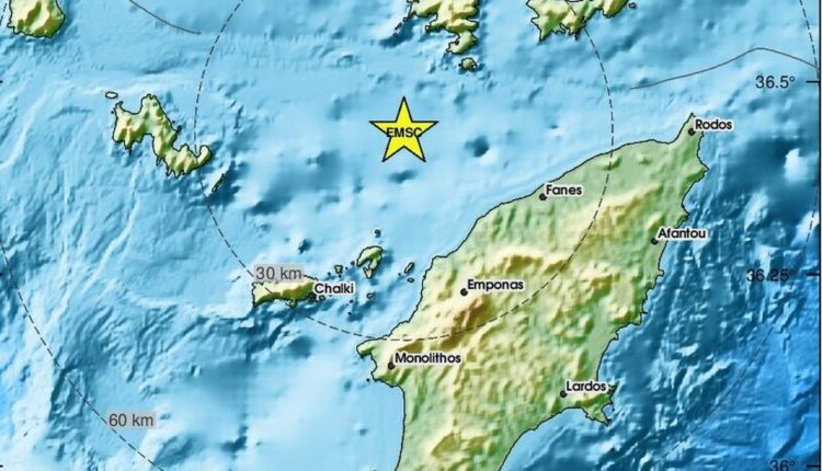 Η δόνηση σημειώθηκε σε θαλάσσιο χώρο βορειοδυτικά της Ρόδου.