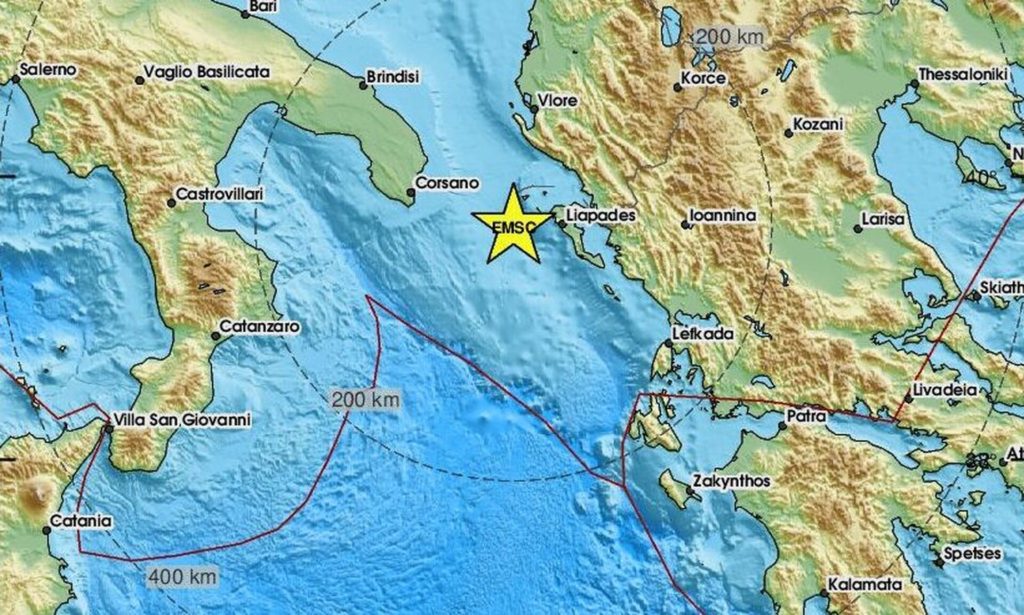 Το ακριβές επίκεντρο της δόνησης εντοπίζεται 64 χλμ. δυτικά από την πόλη της Κέρκυρας σύμφωνα με το EMSC.