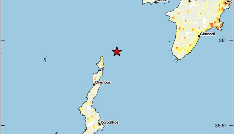 Το ακριβές επίκεντρο της δόνησης εντοπίζεται, 50 χλμ. βόρεια της Καρπάθου.