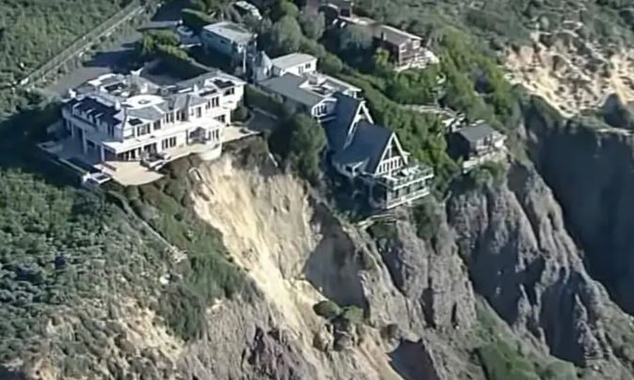 Τρεις επαύλεις πολλών εκατομμυρίων δολαρίων φαίνονται στην άκρη ενός γκρεμού στην Καλιφόρνια μετά από μια πρόσφατη κατολίσθηση που διέβρωσε τη γη που κάποτε ήταν οι αυλές τους, σύμφωνα με ένα βίντεο που γυρίστηκε από τοπικό ειδησεογραφικό δίκτυο.