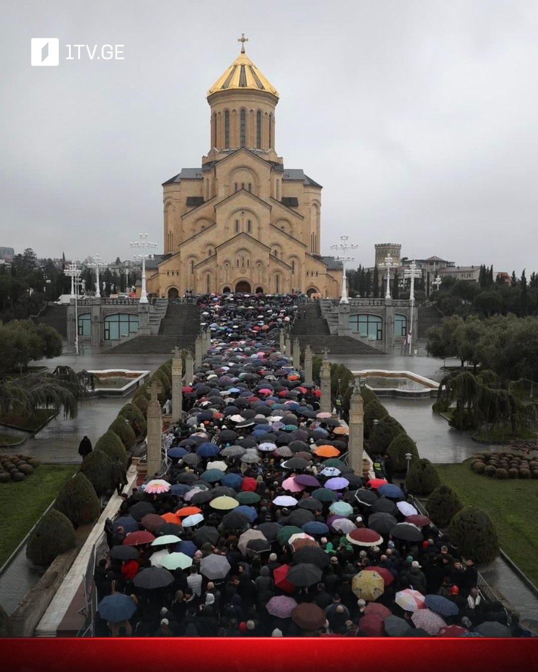 Σήμερα το πρωί χιλιάδες Γεωργιανοί, για τρίτη ημέρα και παρά την βροχόπτωση, έχουν σχηματίσει ουρές και με υπομονή αναμένουν να προσκυνήσουν το σκήνωμα του μακαριστού Πατριάρχη.