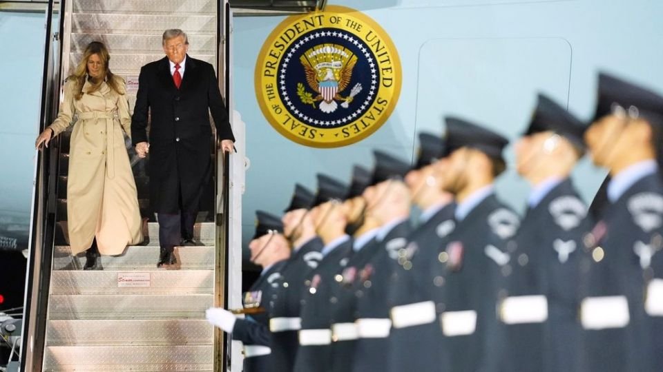 Το προεδρικό αεροσκάφος των ΗΠΑ (Air Force One) προσγειώθηκε το βράδυ της Τρίτης στο αεροδρόμιο Στάνστεντ του Λονδίνου, λίγο μετά τις 21:00 (τοπική ώρα, 23:00 ώρα Ελλάδος). Ο αμερικανός πρόεδρος Ντόναλντ Τραμπ και η σύζυγός του Μελάνια επιβιβάστηκαν στη συνέχεια σε ελικόπτερο προκειμένου να μεταβούν στην κατοικία του πρεσβευτή των ΗΠΑ.