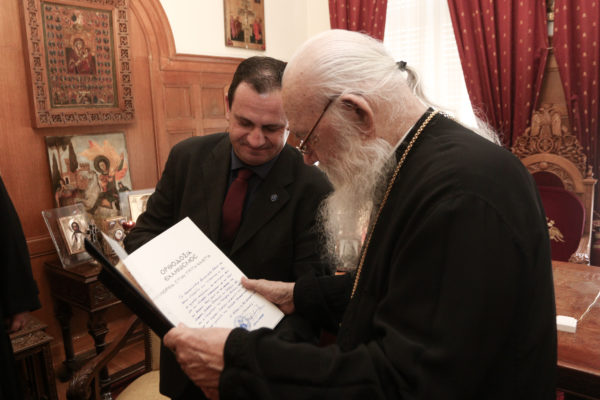 Το πρωί ο Αρχιεπίσκοπος Αθηνών και πάσης Ελλάδος κ.κ. Ιερώνυμος υποδέχθηκε τα μέλη του Δ.Σ. του Συλλόγου Φίλων Ιεράς Μονής Κουτλουμουσίου Αγίου Όρους.