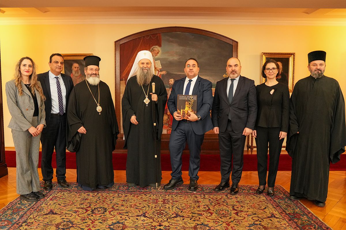Ο Πατριάρχης Σερβίας κ.κ. Πορφύριος υποδέχθηκε την Παρασκευή 20 Φεβρουαρίου 2026, με αισθήματα αδελφικής εγκαρδιότητας, στο Πατριαρχικό Μέγαρο, τον Θεοφιλέστατο Επίσκοπο Μεσαορίας κ. Γρηγόριο, Πρόεδρο του Γραφείου Προσκυνηματικών Περιηγήσεων της Ορθοδόξου Εκκλησίας της Κύπρου, καθώς και τον Υφυπουργό Τουρισμού της Κύπρου κ. Κώστα Κουμή, οι οποίοι επισκέπτονται το Βελιγράδι με αφορμή την 47η Έκθεση Τουρισμού, στην οποία τιμώμενη χώρα για φέτος είναι η Κύπρος