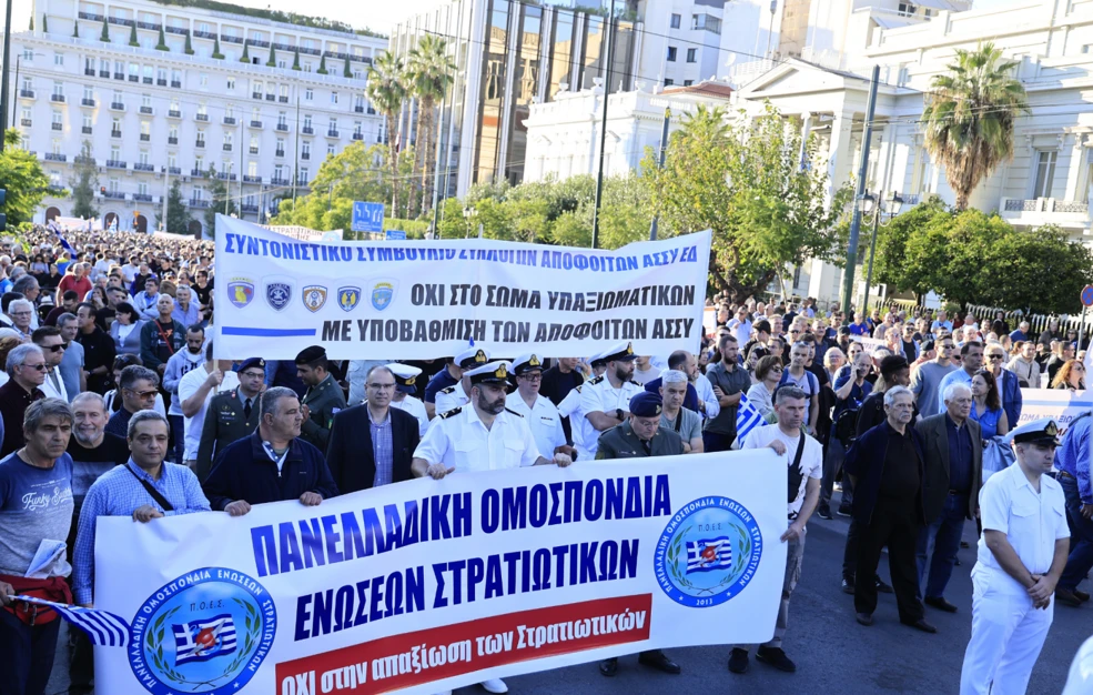 Μεγαλειώδης είναι η συμμετοχή στη συγκέντρωση διαμαρτυρίας που πραγματοποιούν εν ενεργεία και απόστρατοι στρατιωτικοί στο κέντρο της Αθήνας.