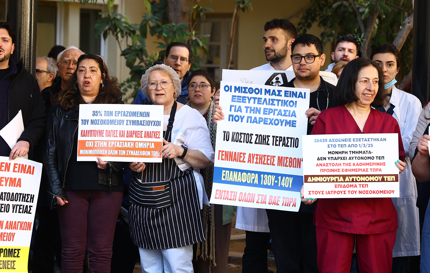 Οι υγειονομικοί ξεκαθάρισαν ότι δεν συμβιβάζονται με την «εμπορευματοποίηση της Υγείας» και απαίτησαν μονιμοποιήσεις, αυτόνομο ΤΕΠ και αναβάθμιση των εργασιακών τους δικαιωμάτων, τονίζοντας ότι η ανθρώπινη ζωή δεν μπορεί να λογίζεται ως «κόστος».