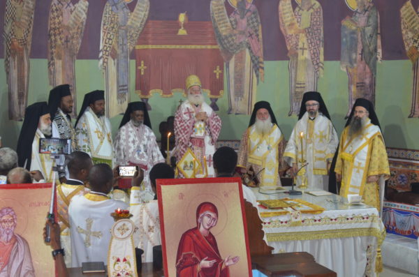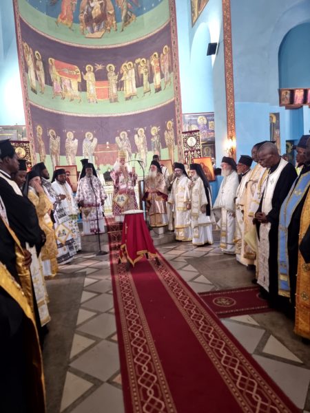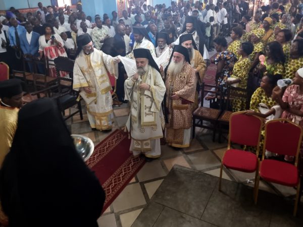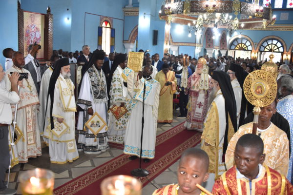 Το πρωί τελέσθηκε Πατριαρχική Θεία Λειτουργία υπό του Μακαριωτάτου Πάπα και Πατριάρχου Αλεξανδρείας και πάσης Αφρικής κ.κ. Θεοδώρου του Β’ συμπαραστατούμενου υπό των Σεβασμιωτάτων Αρχιερέων Καμπάλας κ. Ιερωνύμου, Κινσάσας κ. Θεοδοσίου, Κανάγκας κ. Χαρίτωνος, Νιγηρίας κ. Νικοδήμου, Μπενί κ. Αθανασίου, Κωνσταντιανής κ. Κοσμά και Ιππώνος κ. Στεφάνου.