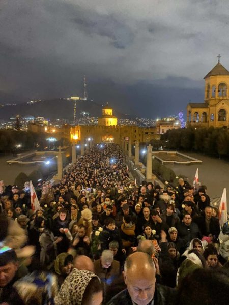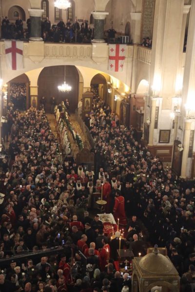 Συγκινητικές στγμές εκτυλίχθηκαν το βράδυ της Πέμπτης (19/3) στην Τιφλίδα, όπου χιλιάδες πνευματικά τέκνα, τα βαφτιστήρια του Πατριάρχη, συγκεντρώθηκαν και σχημάτισαν πομπή προς τον Καθεδρικό Ναό. Η συμβολική αυτή κίνηση ανέδειξε με τον πλέον χαρακτηριστικό τρόπο την πνευματική παρακαταθήκη του εκλιπόντος, ο οποίος είχε βαπτίσει περισσότερα από 50.000 παιδιά, ενισχύοντας παράλληλα τον κοινωνικό και δημογραφικό ιστό της χώρας.